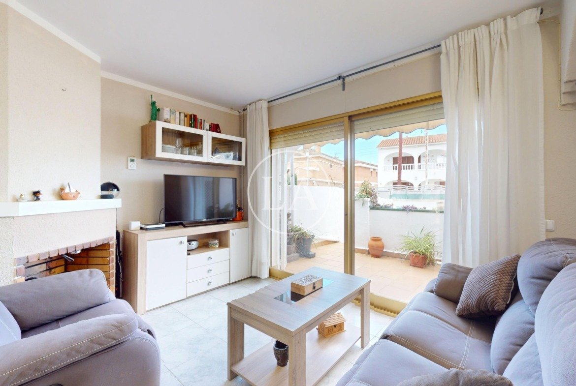 En el barrio residencial de Cambrils Mediterrani, una zona tranquila y consolidada, se encuentra esta casa adosada que destaca por su doble orientación, sus espacios exteriores y su proximidad al mar. La vivienda se sitúa a unos 700 metros de la playa, lo que permite llegar caminando en menos de diez minutos, y ha visto reforzado su atractivo gracias a la retirada de la antigua vía del tren y al futuro proyecto de vía verde, que transformará el entorno en un agradable eje peatonal y ciclista.